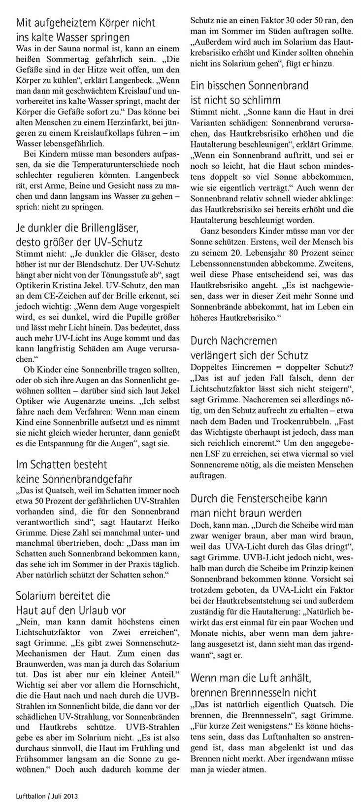 Mythen um die Haut, Hautkrebs, Sonnenschutz, Haarentfernung
